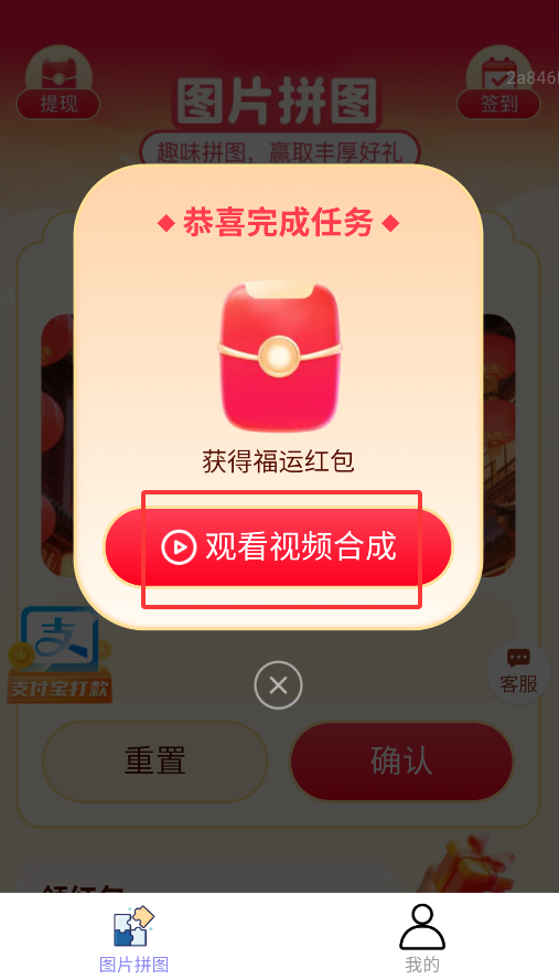 3、拼图完成后观看完整视频即可解锁福运红包奖励。