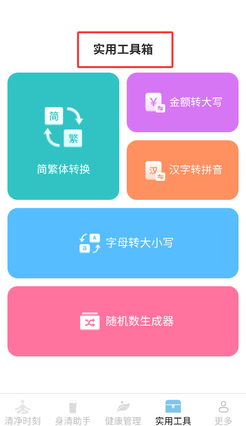 4、"实用工具"专区提供简繁转换、金额大写转换、汉字拼音转换及字母大小写切换等实用功能。
