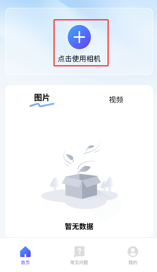 2、首页提供"连接相机"功能入口,点击后进入设备配对引导界面。