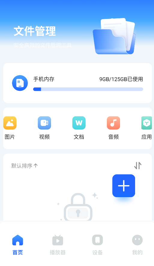 1、打开应用后,在首页可直观查看手机各类存储内容,包括图片库、视频文件、文档资料及音频资源。