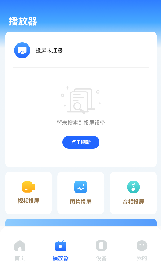 2、进入媒体播放界面,支持将视频、图片或音乐一键投射到智能电视等大屏设备。
