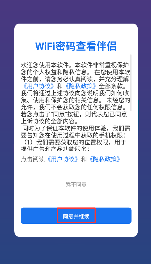 1、首次启动APP会显示用户协议和隐私声明,点击"同意"按钮后即可进入网络检测主界面。