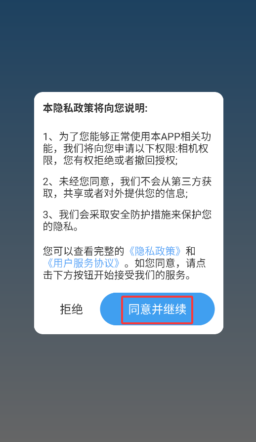 1、首次启动APP时会弹出用户协议,点击"同意"后即可进入壁纸浏览界面。