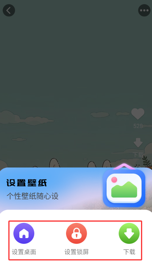 4、支持三种使用方式:直接应用为桌面背景/锁屏壁纸,或先下载到本地相册。