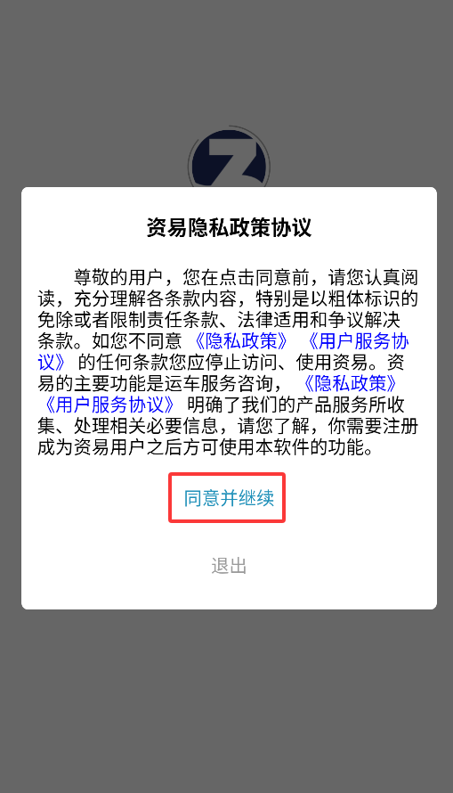 1、首次启动APP会弹出用户协议,点击"同意"后即可进入二手车交易平台主界面。