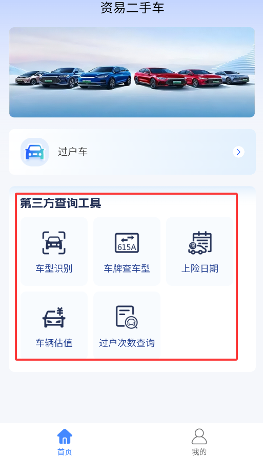 4、平台还集成多种辅助工具:车型识别、车牌查款、保险日期查询、价格评估及过户次数核查等专业服务。