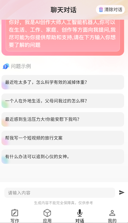 4、通过智能对话功能,可直接输入问题或需求,获取针对性的文案建议和创作灵感。