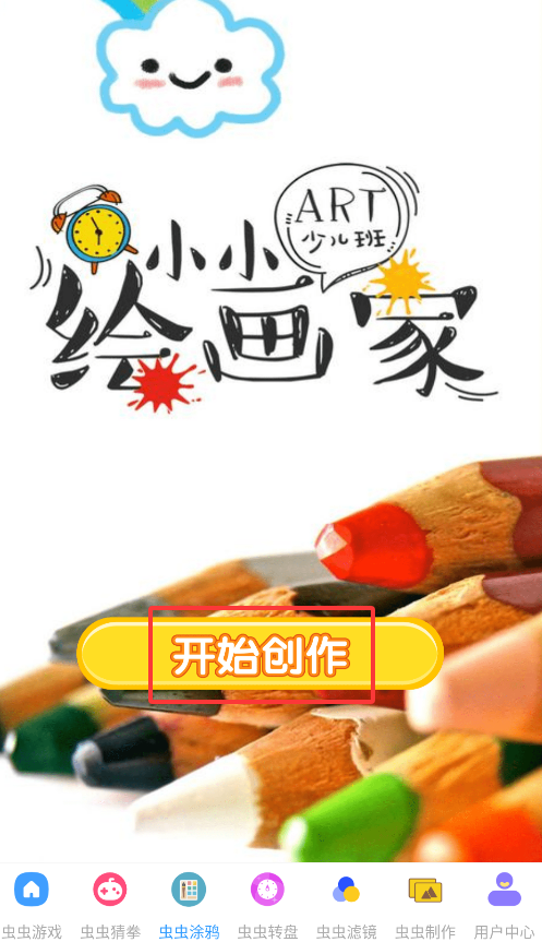 4、通过"创意涂鸦"功能可以使用丰富的绘画工具和虫虫贴纸,自由创作并保存个性化作品。