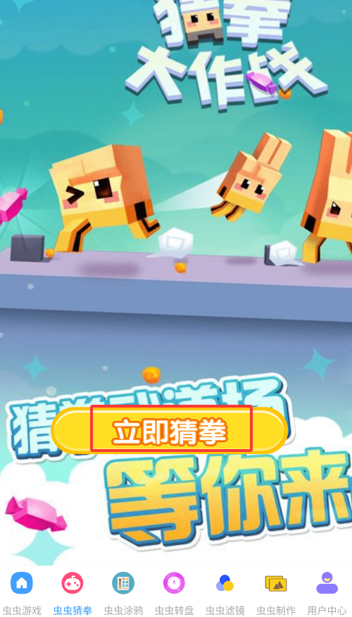 3、"趣味猜拳"板块提供创新的虫虫主题猜拳游戏,包含多种可爱的虫虫角色和特效。