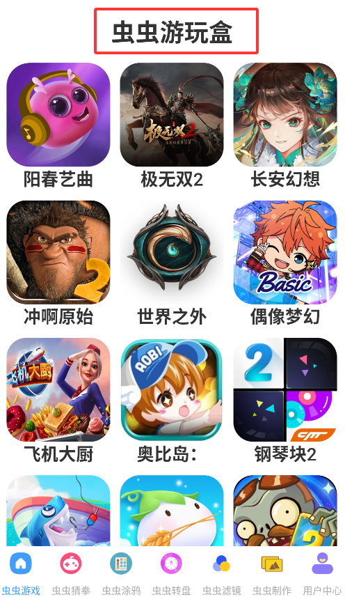2、进入"虫虫游戏中心"可浏览游玩盒内的所有游戏,每个游戏都有详细的玩法说明和特色介绍。