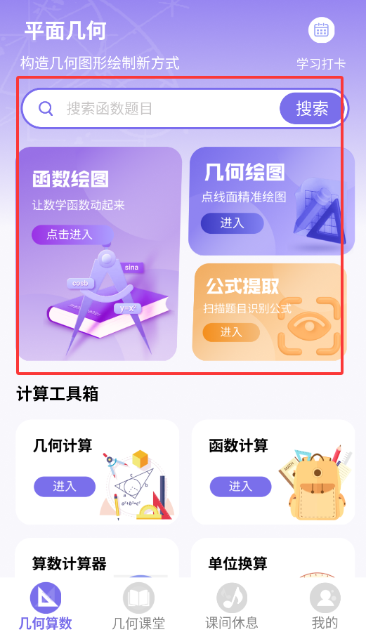 2、"智能绘图"支持函数图像绘制、几何图形构建及数学公式智能识别转换功能。