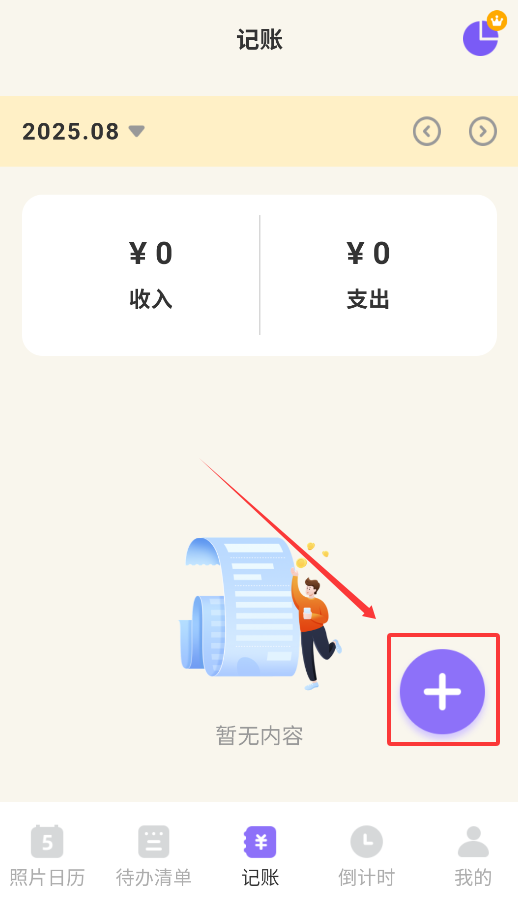 4、使用记账功能时,通过右下角加号可添加收支记录,支持自定义分类和添加备注说明。