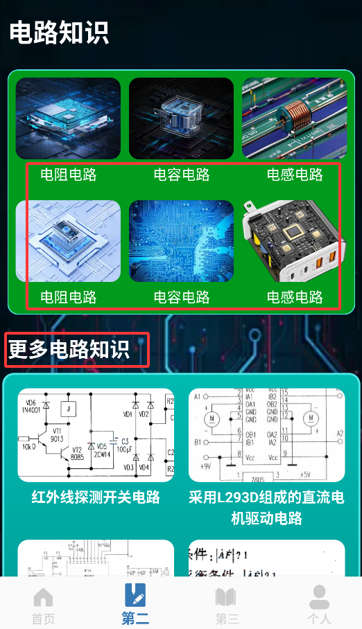 3、电路知识库包含电阻电路、电容电路、电感电路等详细原理讲解及实用案例分析。