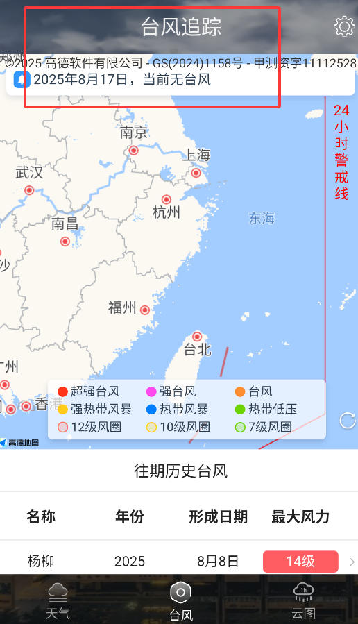 3、台风追踪功能提供当前台风路径预测,并支持查询历史台风档案信息。
