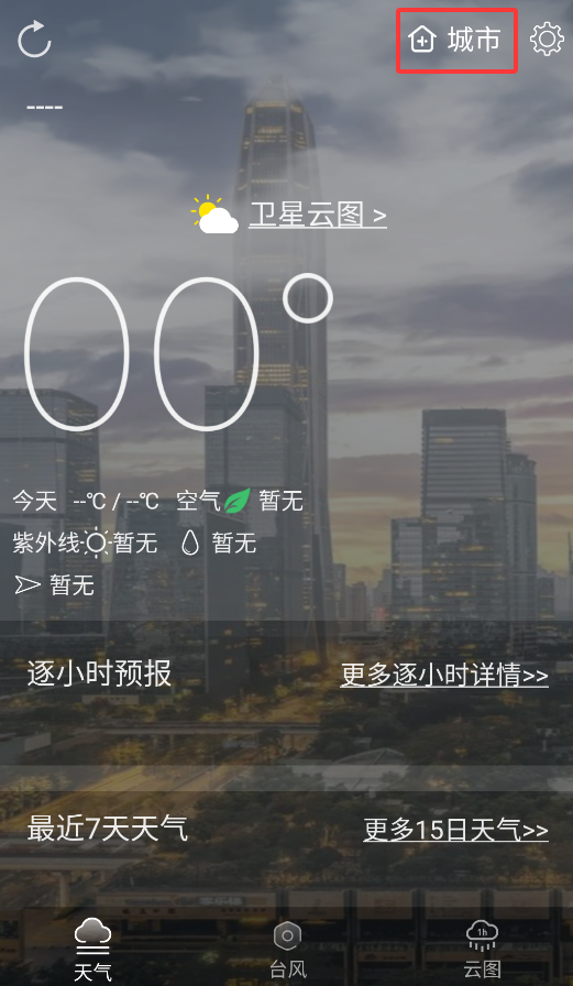 2、在天气页面点击右上角"+"号,可添加关注城市,实时查看当地气象数据。