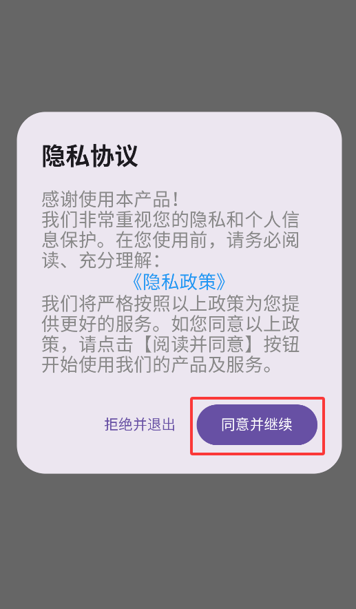 1、首次启动螃蟹交易APP时,系统会弹出用户协议确认窗口,点击"同意"按钮后方可进入应用主界面。