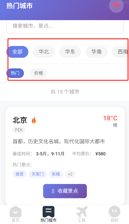 4、热门地点筛选功能支持按区域和热门区间快速查找。
