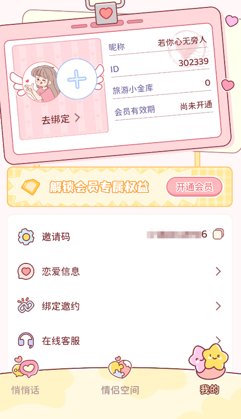 1、启动APP后,进入情侣空间,点击"绑定伴侣"并输入对方的账号信息,双方确认后即可建立专属连接。