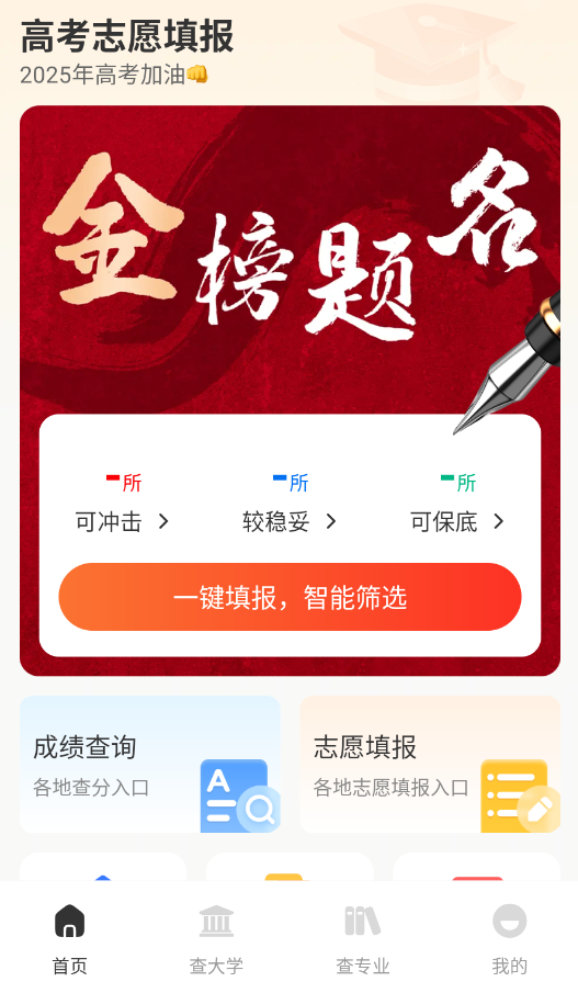 志愿填报大师这个填志愿的APP挺实用的,查大学信息特别方便。输入分数就能看到能报哪些学校,还会给出报考建议。各大学的录取分数、专业情况都能查到,省得自己到处找资料。现在要高考报志愿的同学,用这个能少走不少弯路,快点下载一个试试吧。