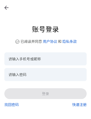 4、进入账号登录页面,在右下角可以看到快速注册。