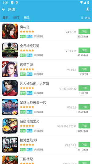 3、最新游戏:每天第一时间发布最新游戏,并提供最全面的游戏分类、专题和推荐。