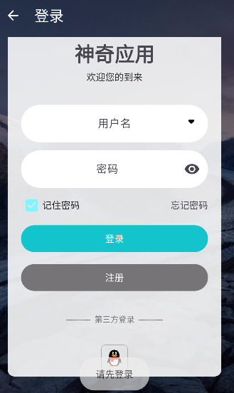 3、进入神奇应用登录页面,有账号的可以直接登录,或者使用QQ登录。