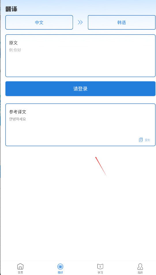 2、词典翻译功能支持中韩互译,可离线使用,并附带例句与语法解析,加深用户理解。