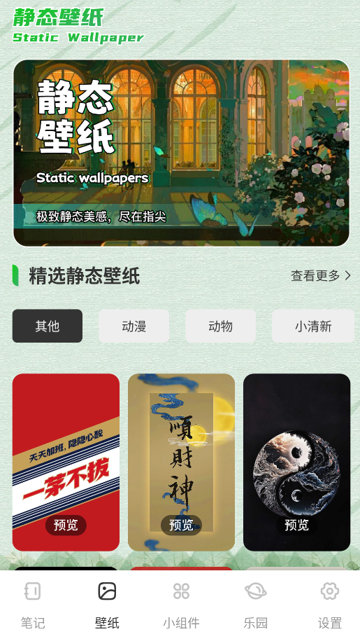 2、动态壁纸系统:每日更新100+高清动态壁纸,支持根据时间自动切换日夜模式壁纸。
