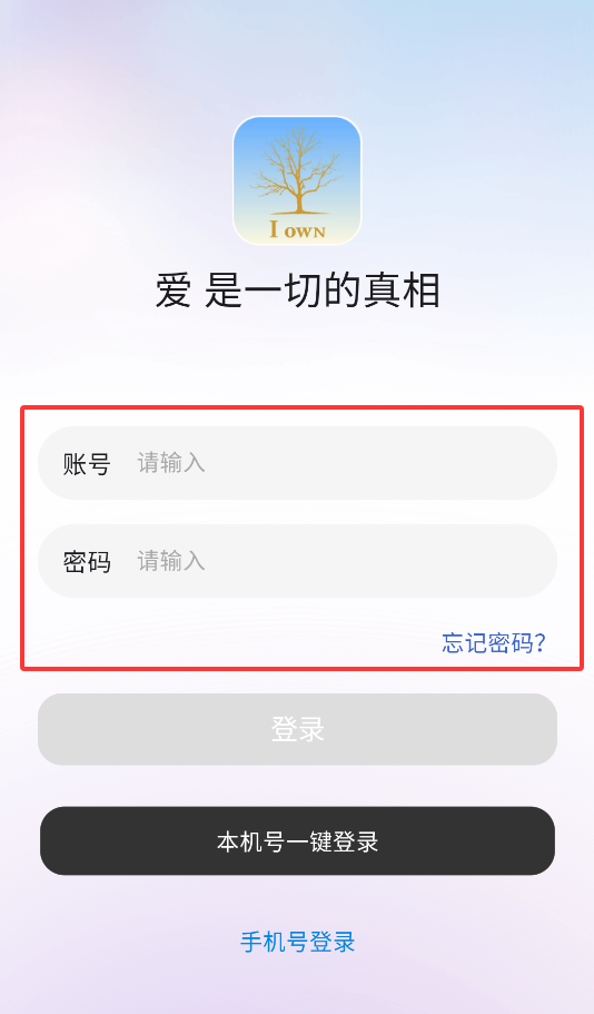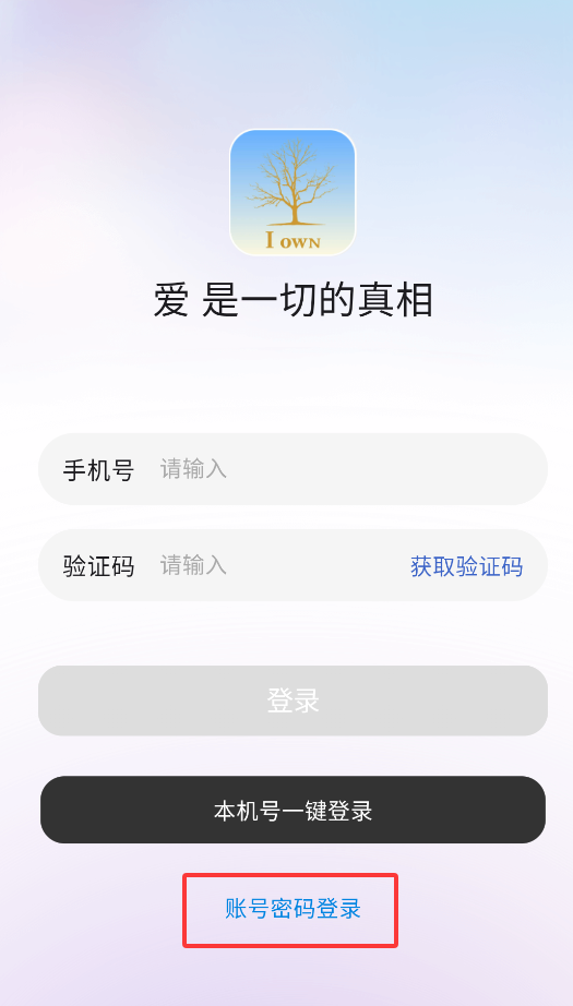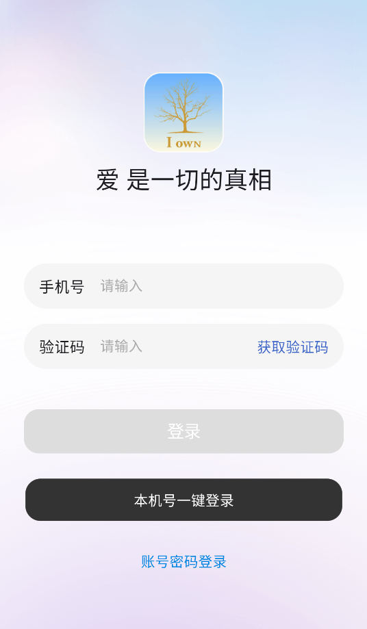 1、启动I own APP后,在登录界面输入手机号获取短信验证码完成快速登录。
