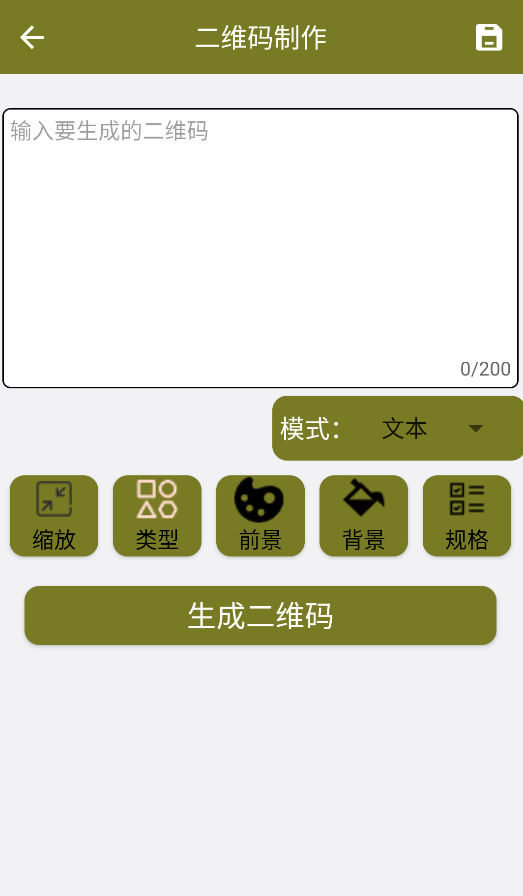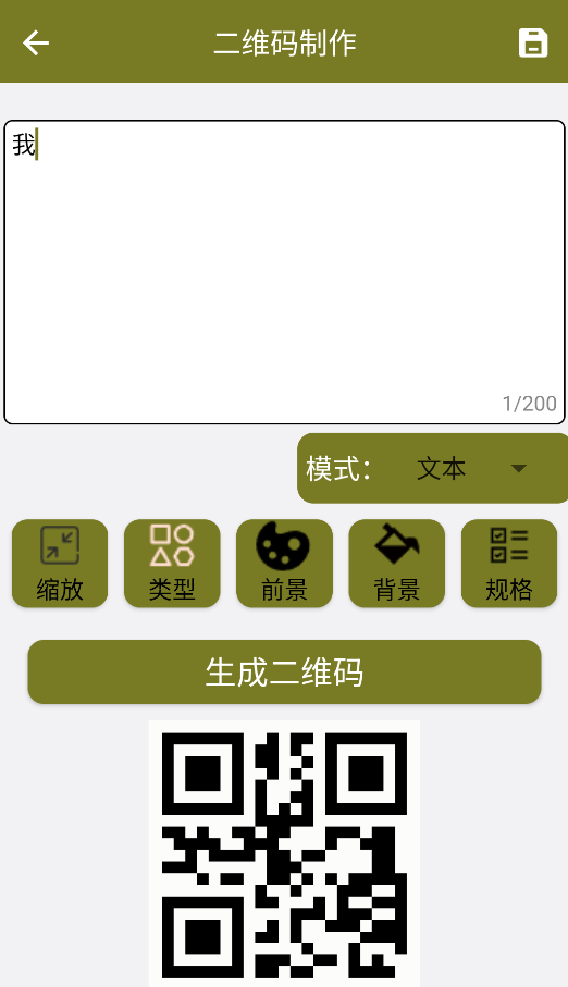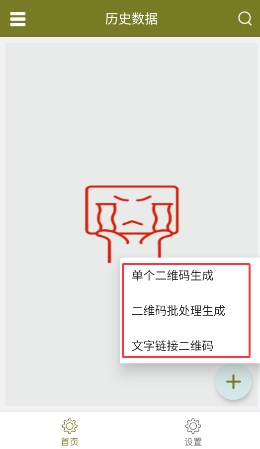 1、启动APP后,点击首页右下角的"+"按钮,选择"生成二维码"功能。