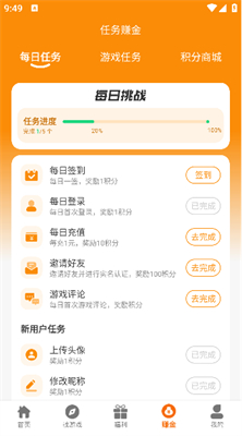 5、在任务赚金中完成每日任务、游戏任务可以获得奖励哦。