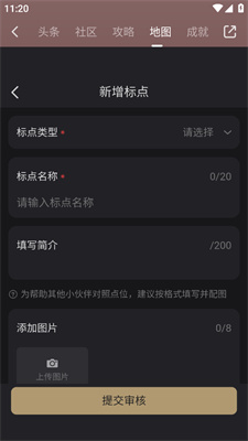 3、标记好位置之后点击创建,然后输入标点类型、名称等提交审核即可。