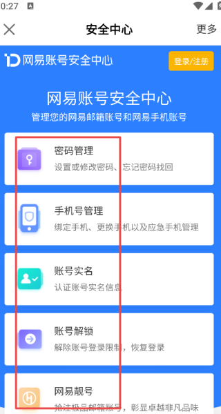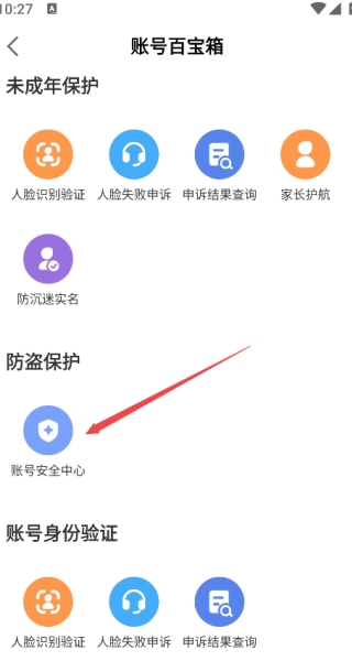 3、接着往下拉,找到帐号安全中心,点击进入账号管理页面;