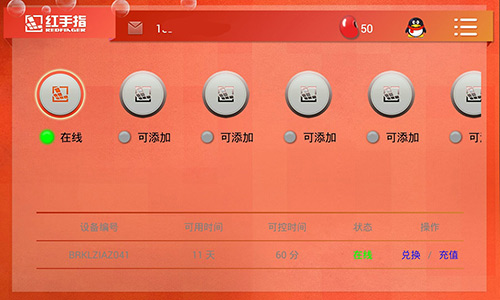注:进入游戏挂好机后。可以直接关闭红手指。这时游戏还会在线持续挂机。即使关机也不影响游戏挂机。