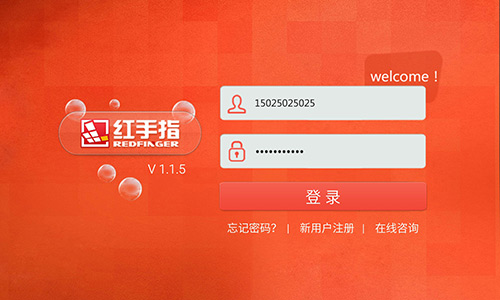 第一步:注册完成后登录红手指客户端安卓版。(注:没有绑定手机的用户点击登录后会弹出一个绑定手机的页面,请绑定手机后再登录.)