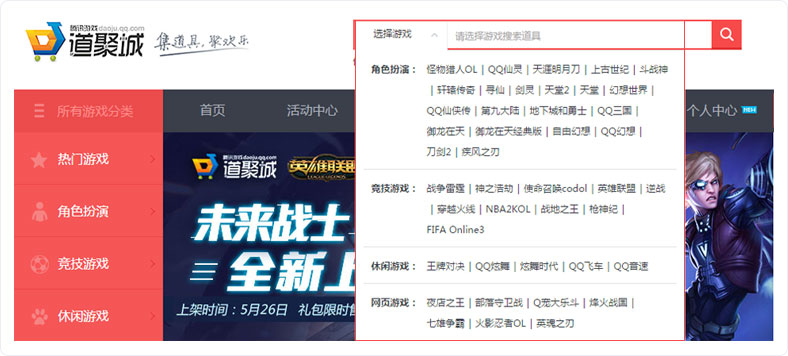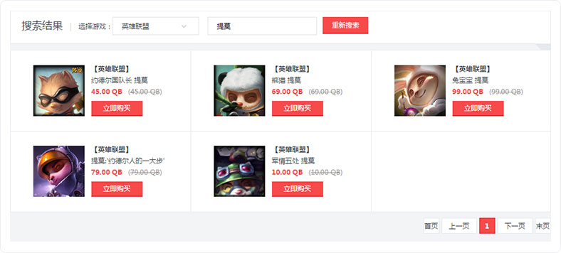 1.道具购买:热门游戏道具、精美游戏礼包、LOL皮肤、LOL英雄、CF武器等优惠购买。