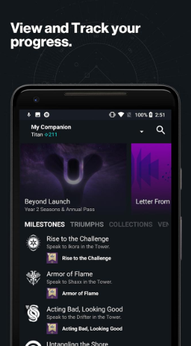 守护者——检查所有你最爱的武器和防具、查看物品数值与特长,并在角色和保险库之间替换装备。直接从邮政官处取出遗失物品,而不需要前往高塔。检视你的凯旋纪录、收藏品、数值追踪器与游戏纪录。