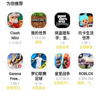 1、像我的世界、元气骑士、地铁跑酷等,更新速度还非常快,推荐使用!