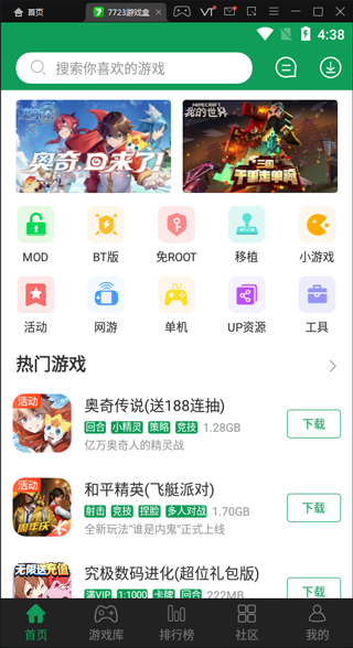 4. 用户友好界面:简洁直观的界面设计,使得7723游戏盒子app操作简单,即便是新手也能轻松上手。