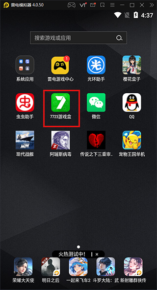 3、安装好雷电安卓模拟器后,将(7723游戏盒.apk)拖到雷电安卓模拟器中安装;