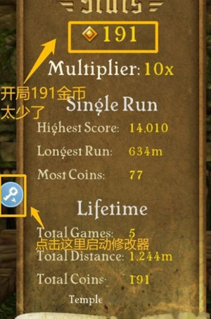 2、添加游戏“神庙逃亡”之后,点击图标启动游戏。记住,一定要在八门内使用修改器启动才能生效;