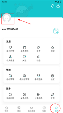 1、进入小鸡模拟器,点击我的,可以看到系统已经默认生成了一个账号,点击头像;