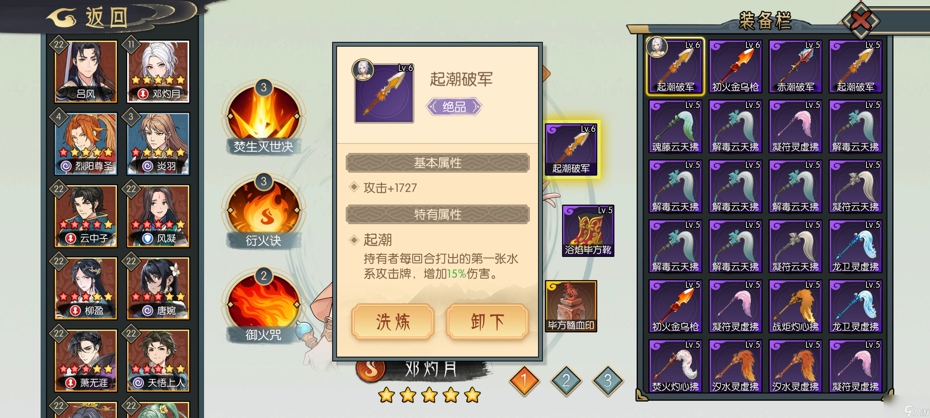 洗练系统没有单独的入口,需要在队伍页面选择一名角色,再选择一件绝品(紫色)装备才会激活,白装、绿装和蓝装无法洗练。