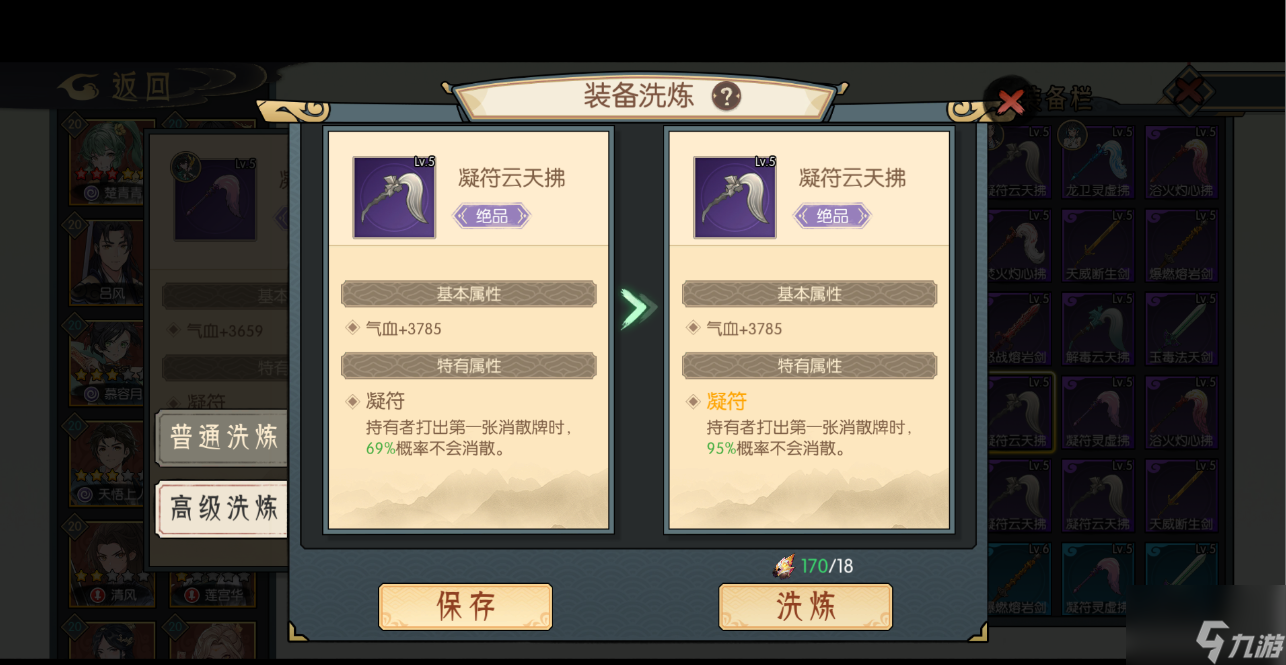 ※洗练之后如果不满意可以直接右上角叉掉不保存,如果满意了可以点保存。