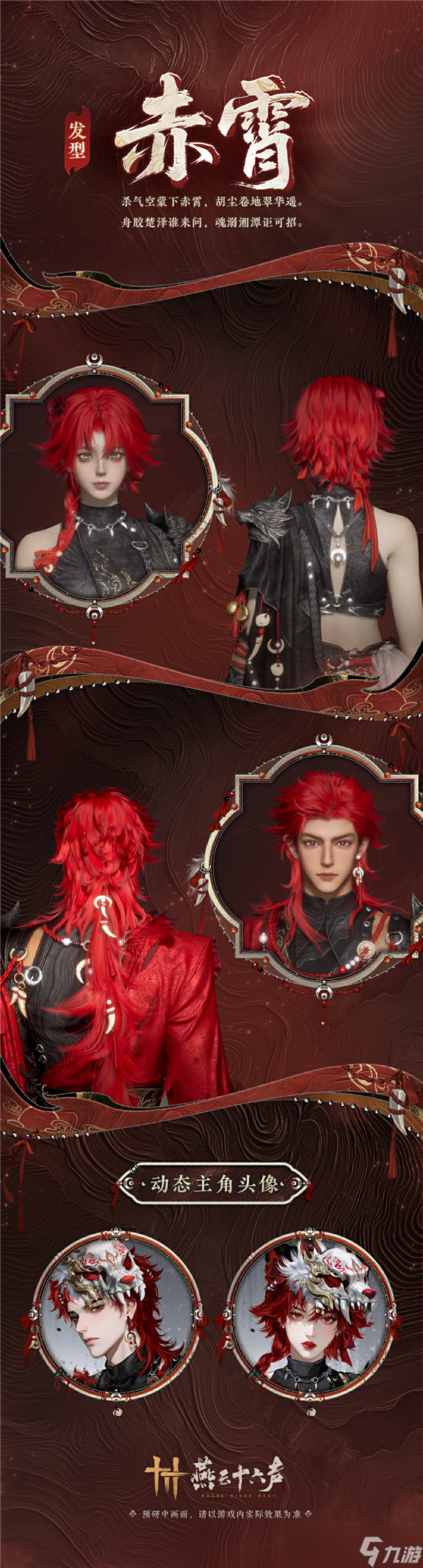 捏脸数据来自玩家:公子云锦、竹影惊鹊 【啸月】取意自大自然的造物杰作。狼首轻铠傲踞肩头,狼骨面饰凛目怒张。红绳串着骨饰垂悬衣间,更有血色光雾萦绕手腕,一如将战利品与伤痕骄傲悬挂,向众生展示,向荒野亮爪。 女款干练凌厉,无袖立领,臂悬金铃或圆或缺,似月食之变;发间玫瑰衔刺而开,如同血月灼目,美得锋利。男款襟袂猎猎,半侧襟袖以赤锦连接,如同燃烧着一片原始火焰,颈部兽牙狰狞,威慑荒野。 捏脸数据来自玩家:公子云锦、竹影惊鹊 生来不驯,荒野独行。全新套装【啸月】即将上架,9月19日后,游侠可前往【商店】以限时优惠价1280「长鸣珠」购得,并附赠主角头像。此优惠价将于2025年10月3日5:00结束,届时将恢复原价2580「长鸣珠」。套装支持上下装拆分和染色,并包含以下可拆分配饰:披挂、帽子、发饰、腰饰。 全新发型 【赤霄】