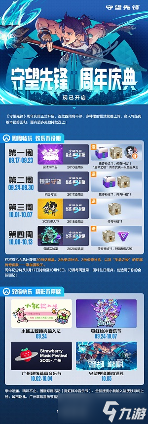 9月17日至10月13日,《守望先锋》将开启连续四周的特色庆生日程,周周活动不重样。不仅能畅玩魔法淘气包、镜影守望、2025愚人节、怪鼠实验室等多种限时模式,还可重温各种经典版本。别忘了周年纪念奖励多多,参与活动即有机会总计获得20神话棱晶、3份史诗补给、3份传奇补给,以及“生命之梭”的专属传奇皮肤——吸血摄政王。
