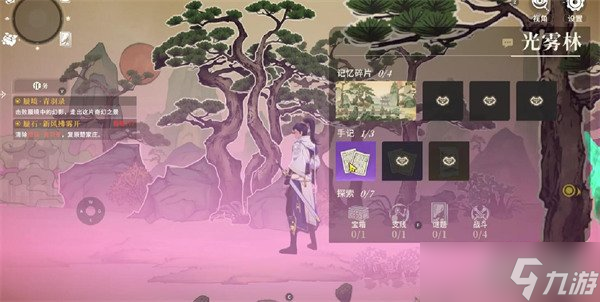玩家来到光雾林中,先跟着发光的记忆碎片直接往前面走,这时候就会碰到岔路口,玩家需要合理的选择.毕竟玩家选择错误之后将会影响到最终的结果,其实玩家在探索光雾林的时候也需要了解光雾林的机制,并且要结合系统,因为在选择时玩家要是发现系统突然弹出金色的箭头,这个其实就是告诉玩家直接按照金色的箭头方向往前面走,此时会涉及到解谜的相关内容。