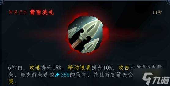 另外注意一下箭雨这个技能,可以更频繁的触发攻击特效!推荐带一个!只要带个余势敲两下基本就能无限开这个BUFF。