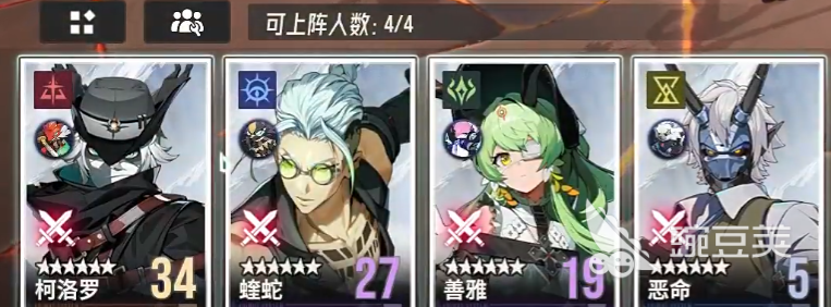 如果我们属性上没有规避推“孽生”状态的影响,很有可能因为boss的伤害过高而直接被秒杀,目前属性上能用的角色成员如下图所示,建议大家去上善雅、蝰蛇、柯洛罗和恶名,善雅的技能要全部给点满,并且生命值越高越好,源器最好是携带上浴血套,纸壳可以携带千兆字节,但最好是最强音。