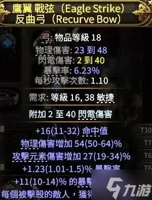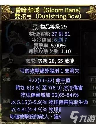 比如这把弓有27-51(39,上下限加起来除以2)物理点伤,6-7(6.5)冰冷点伤【军用武器(攻击类武器)的点伤只看上面写的,下面的词缀已经计算过了】,弓武器当然只有弓类技能能吃到